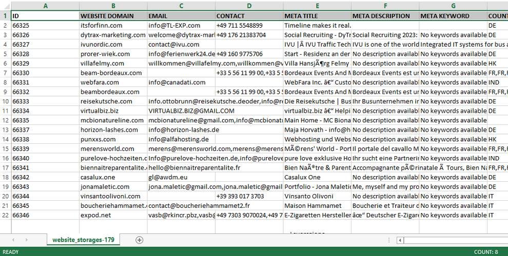 Once the extraction is complete, you’ll receive an organized list of all emails found. Our web scraping service provides clear results, allowing you to quickly review and utilize the website data scraper output for your needs.